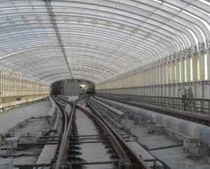 鐵路隔音墻主要由鋼結(jié)構(gòu)立柱和吸隔聲屏板兩部分組成,立柱是聲屏障的主要受力構(gòu)件,它通過螺栓或焊接固定在道路防撞墻或軌道邊的預(yù)埋鋼板上;吸隔聲板是主要的隔聲吸聲構(gòu)件,它通過高強(qiáng)彈簧卡子將其固定在H型立柱槽內(nèi),形成聲屏障。聲屏障的設(shè)計(jì)已較為充分地考慮了高架高速道路、城市輕軌、地鐵的風(fēng)載、交通車輛的撞擊安全和全天候的露天防腐問題。
